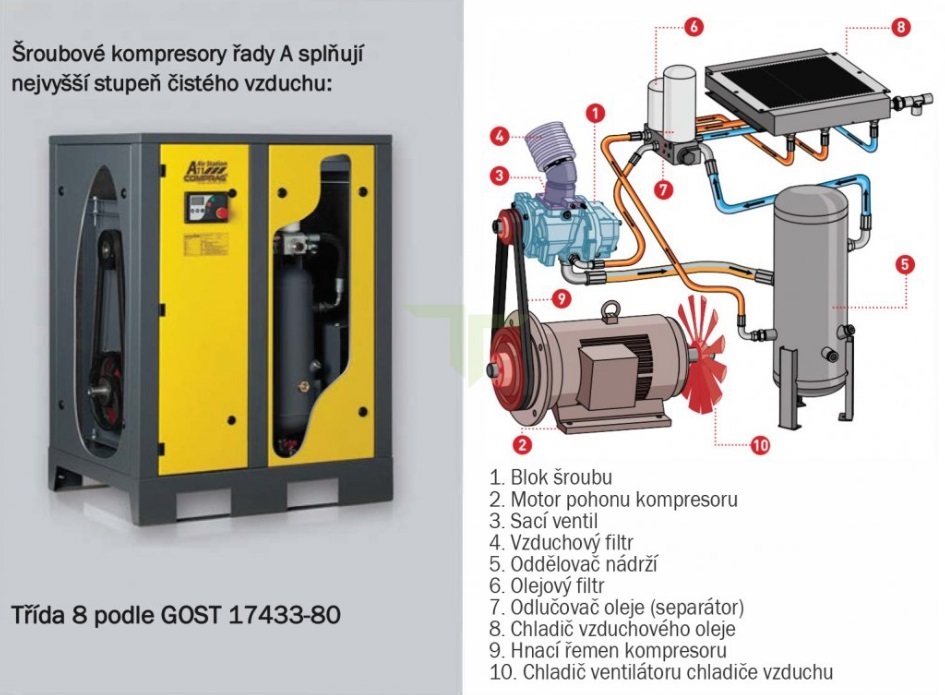 se vstřikováním oleje, který je konstruován pro nepřetržitou a efektivní výrobu stlačeného vzduchu v průmyslových zařízeních.